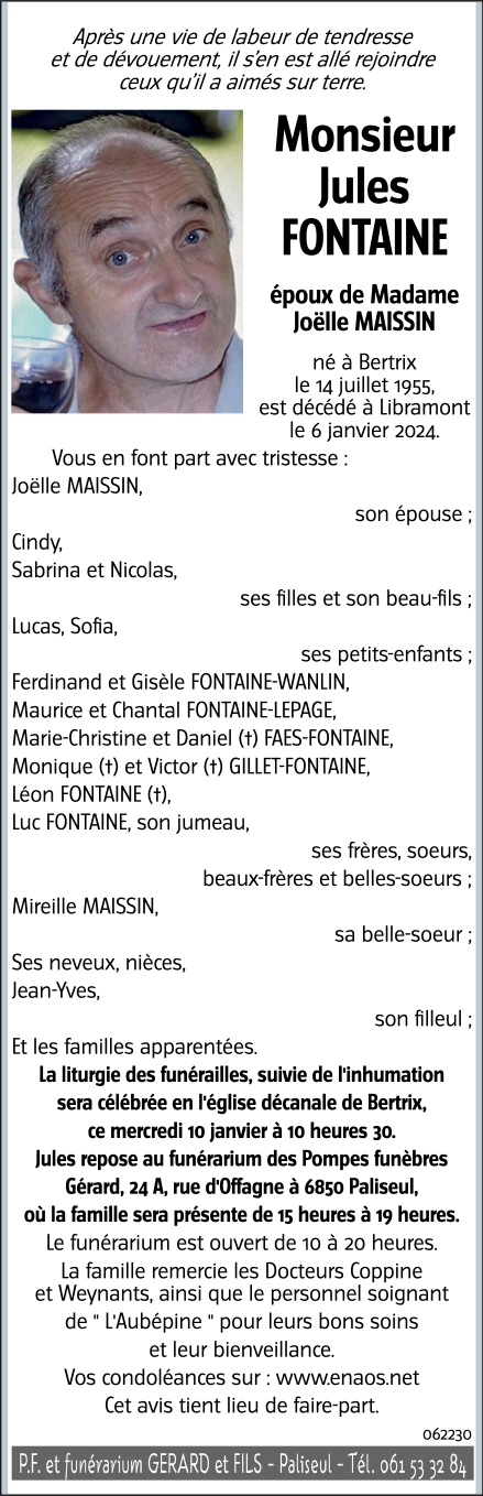 Overleden te Libramont (6800) op zondag 7 januari 2024 op 68-jarige leeftijd