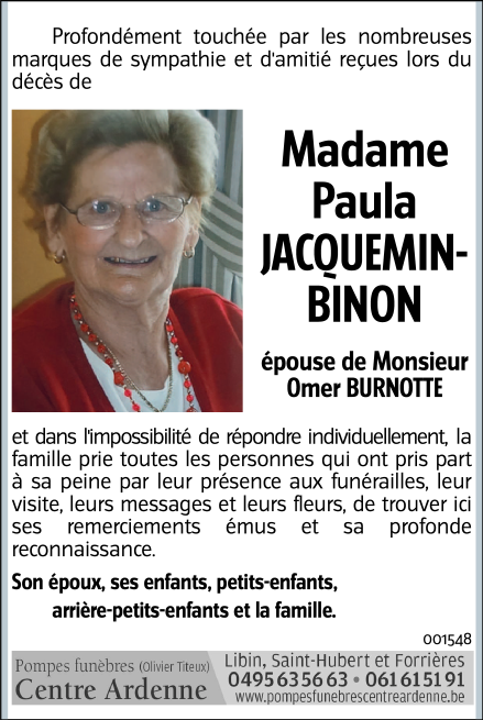Madame Paula JACQUEMIN-BINON