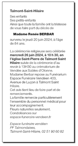 Madame Renée BERBAR née BAUDET