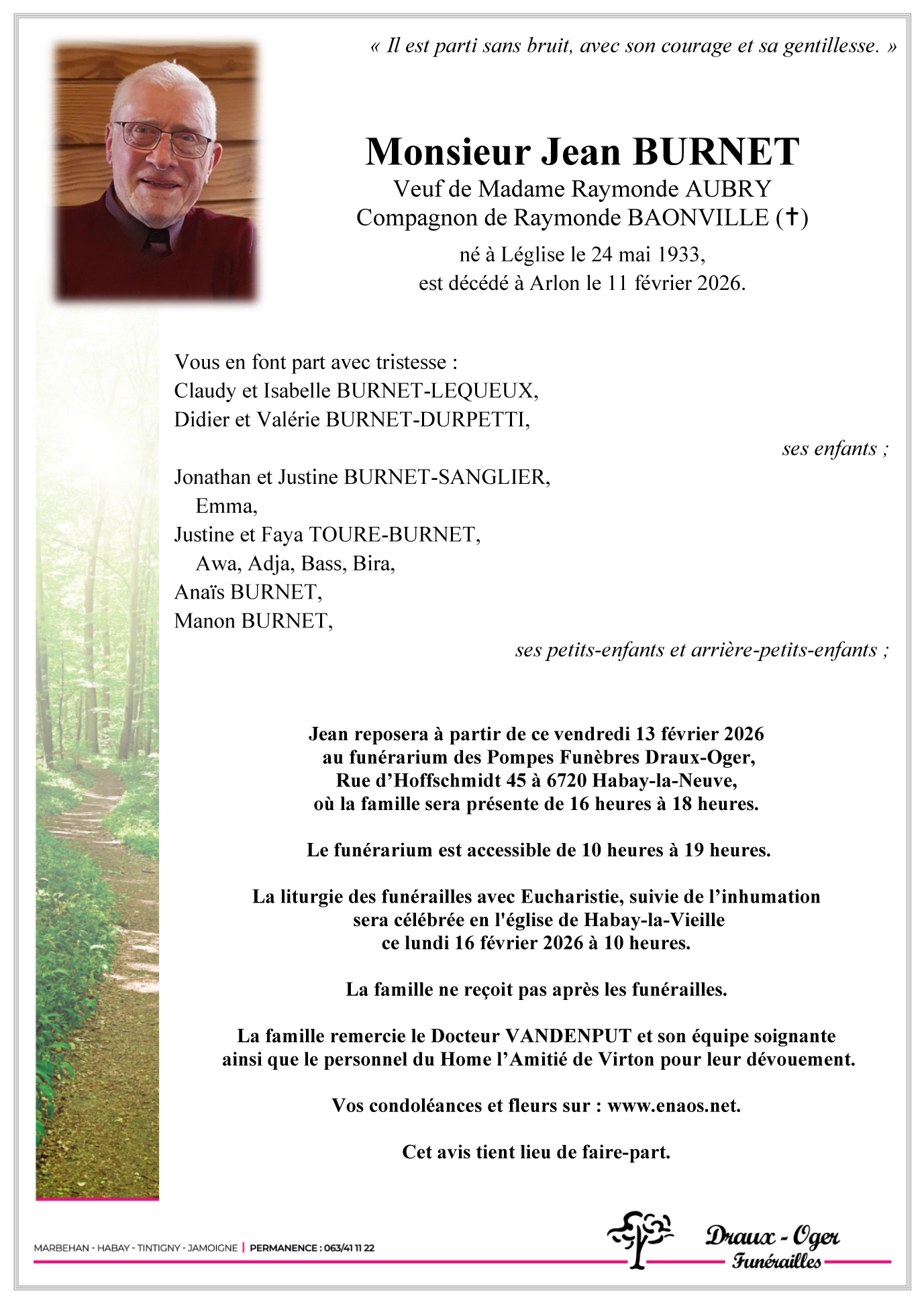 Overleden te Arlon (6700) op woensdag 11 februari 2026 op 92-jarige leeftijd