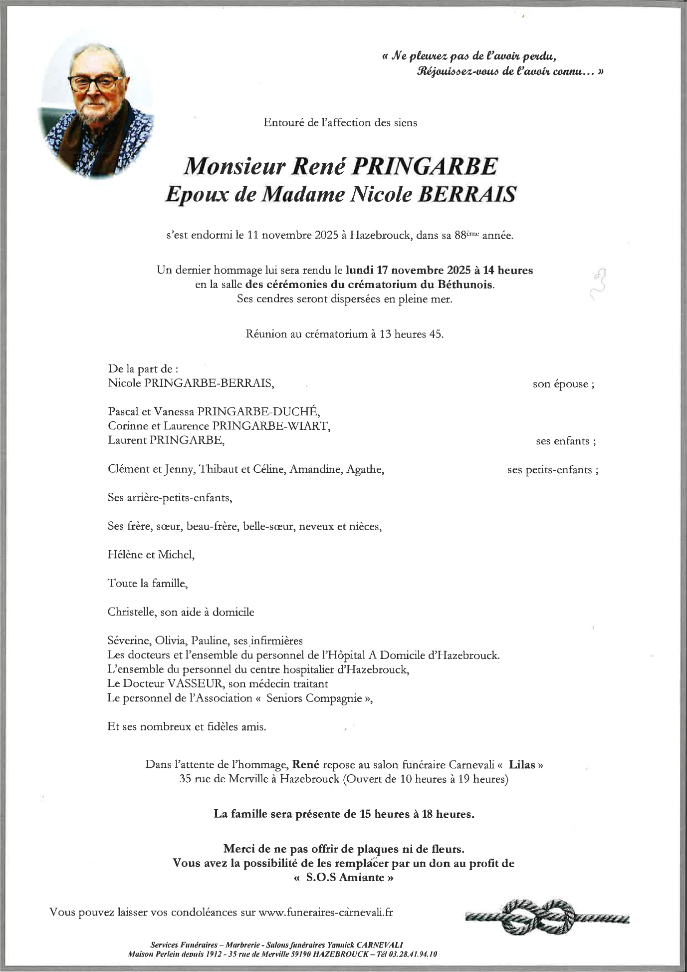 Décédé à Hazebrouck (59190, France) le mardi 11 novembre 2025 à l'âge de 87 ans