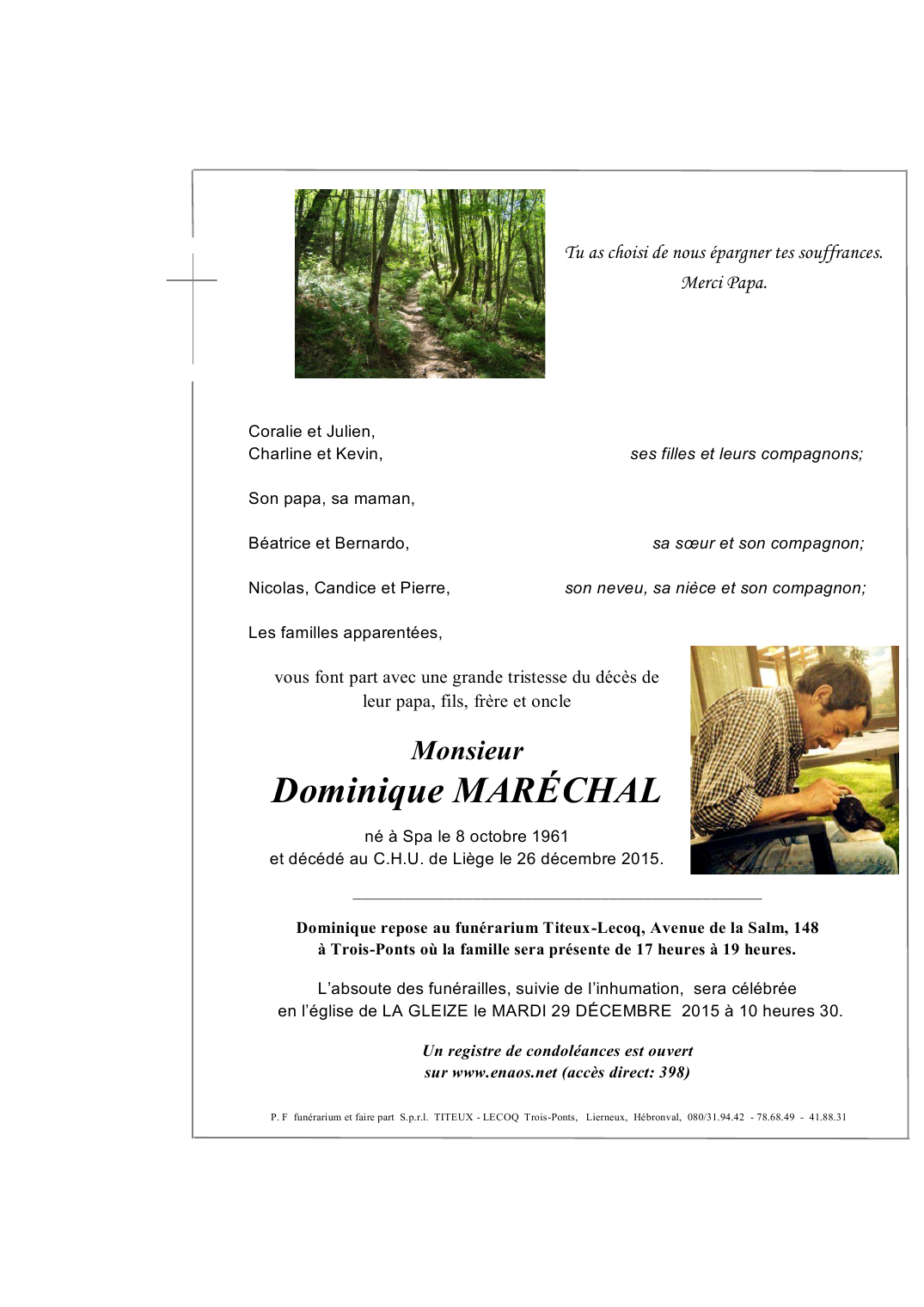 Died in Liège (4000) on 26 December 2015 at the age of 54 years