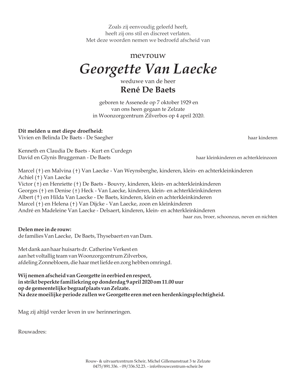 Died in Zelzate (9060) on 04 April 2020 at the age of 90 years
