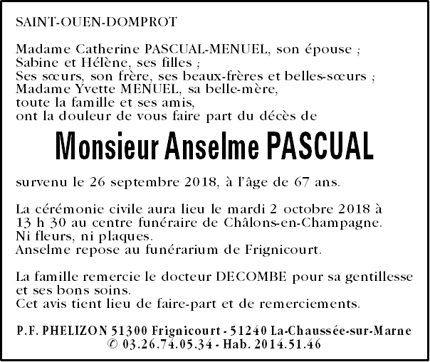 Died in Vitry-le-François (51300, France) on 26 September 2018 at the age of 67 years