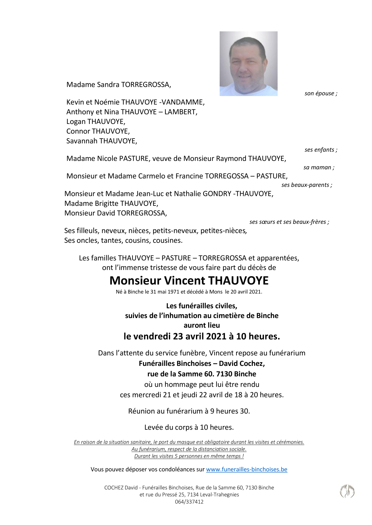 Décédé à Mons (7000) le mardi 20 avril 2021 à l'âge de 49 ans