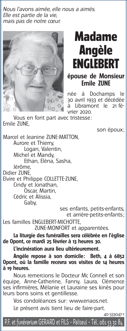 Died in Libramont (6800) on 21 February 2020 at the age of 86 years