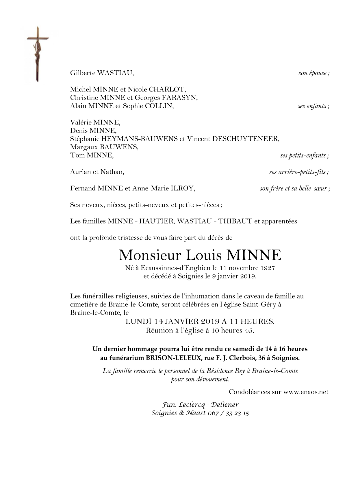 Décédé à Soignies (7060) le mercredi 9 janvier 2019 à l'âge de 91 ans
