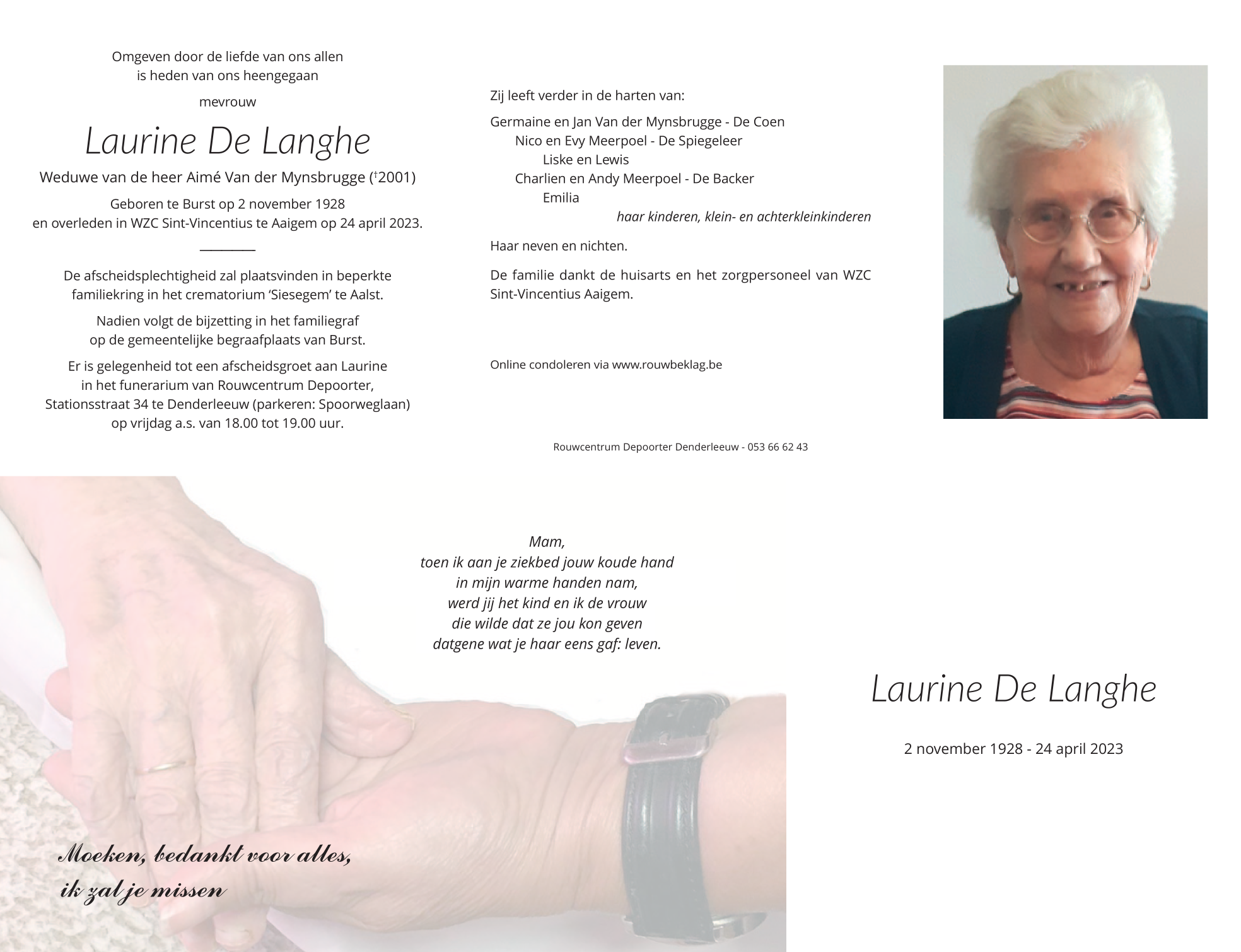 Died in Aaigem (9420) on 24 April 2023 at the age of 94 years