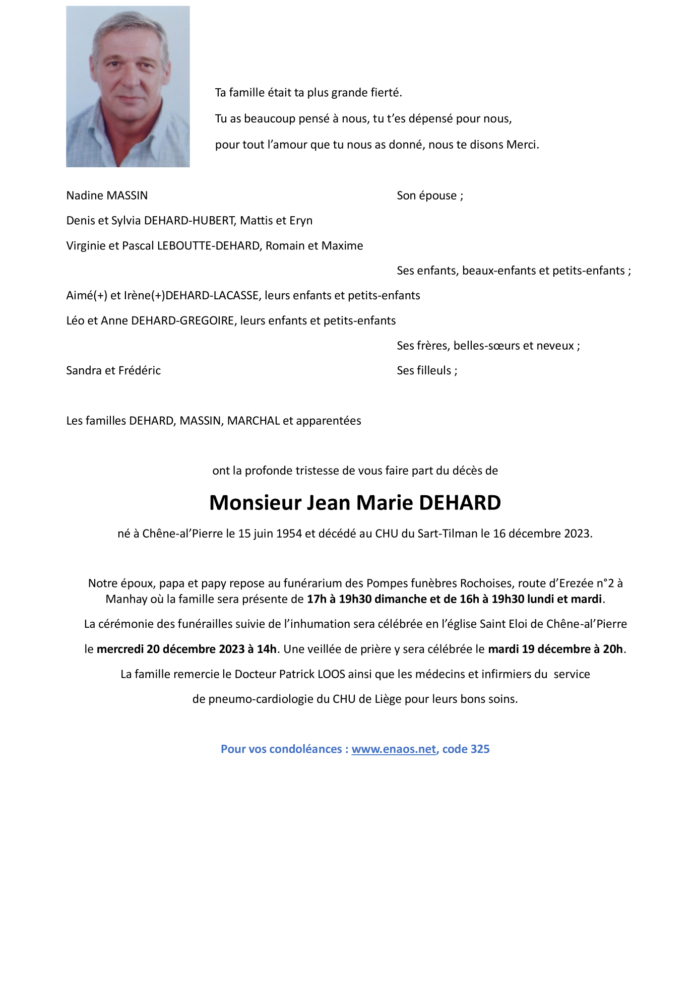 Décédé à Liège (4000) le samedi 16 décembre 2023 à l'âge de 69 ans