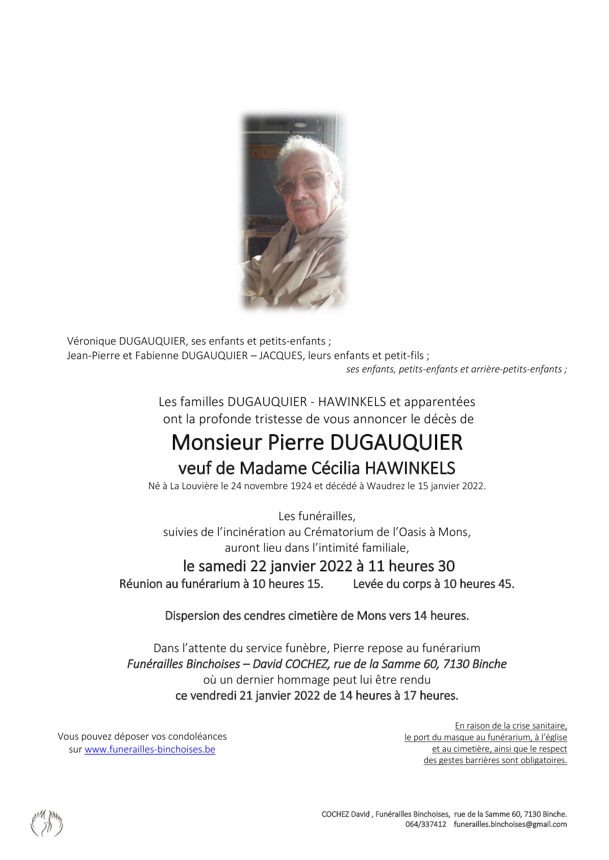Overleden te Waudrez (7131) op zaterdag 15 januari 2022 op 97-jarige leeftijd