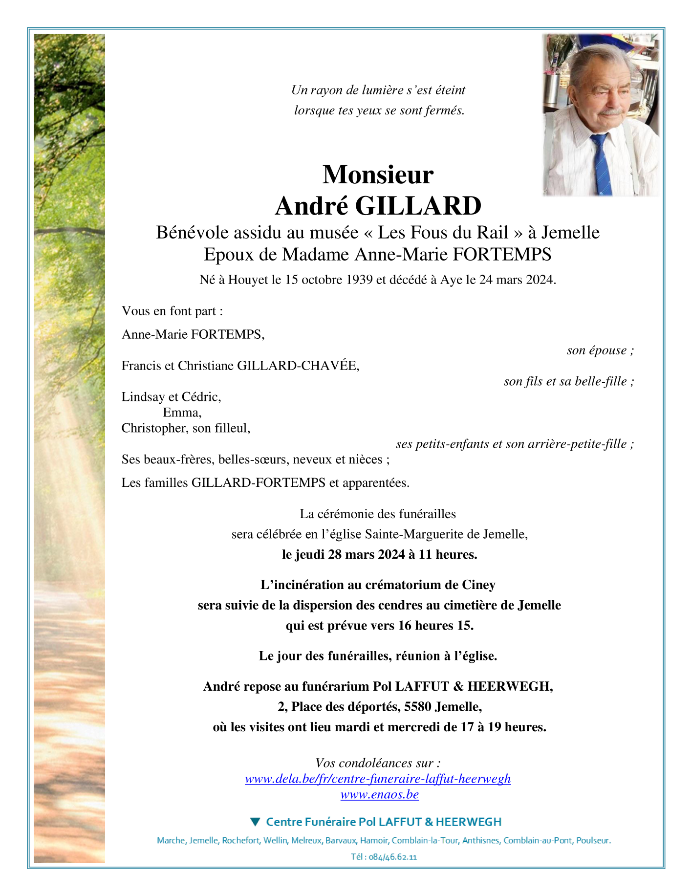 Born in Houyet (5560) on 15 October 1939