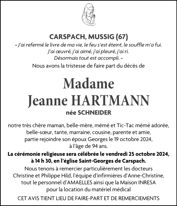 Madame Jeanne Marie HARTMANN née SCHNEIDER