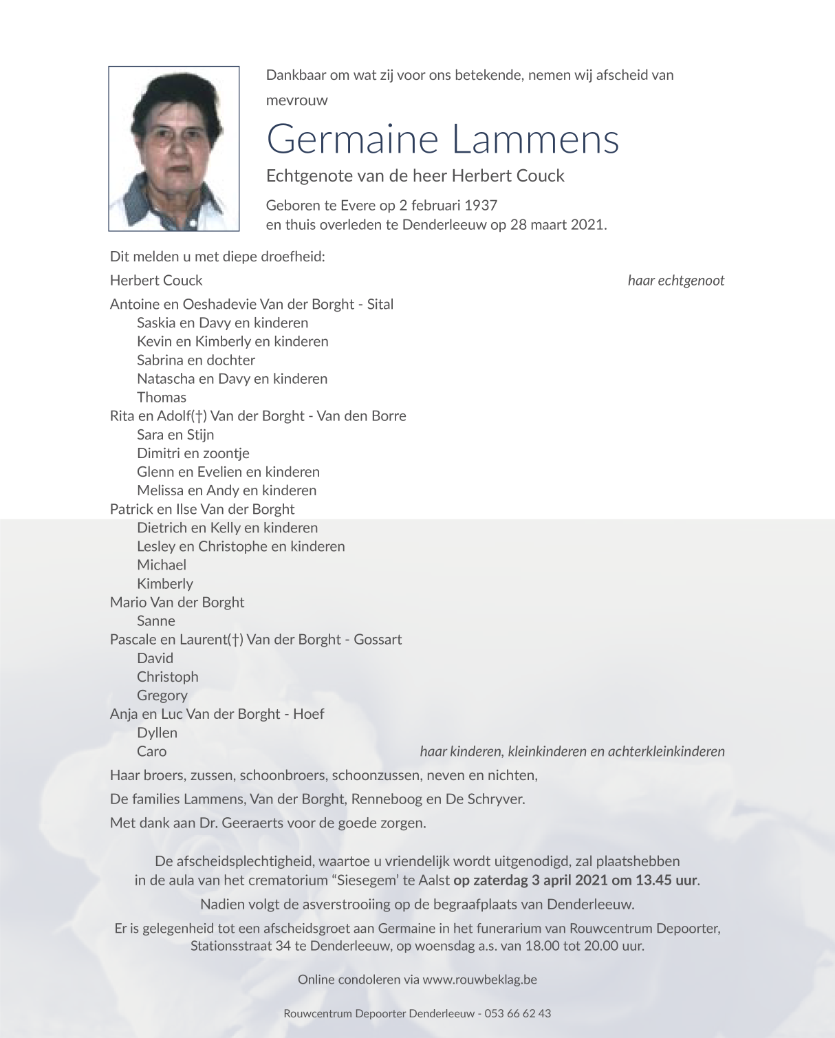 Overleden te Denderleeuw (9470) op zondag 28 maart 2021 op 84-jarige leeftijd