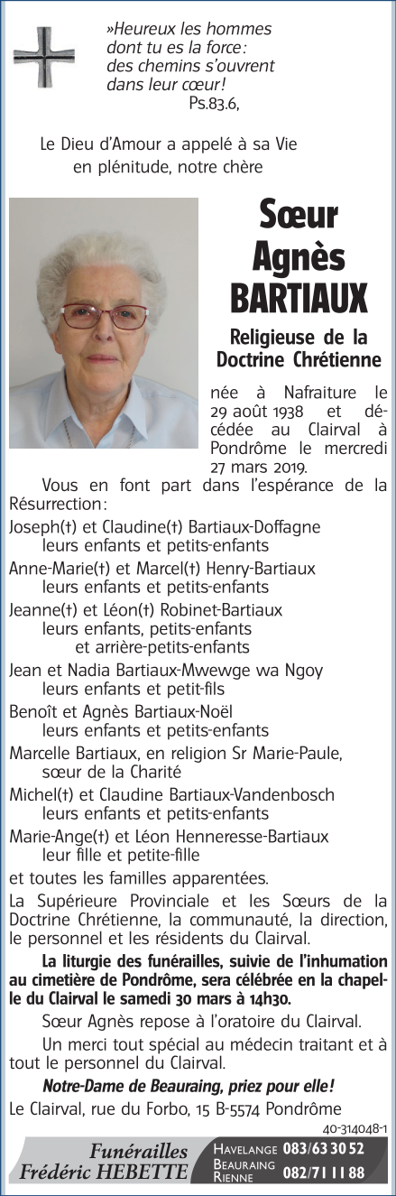 Sœur Agnès BARTIAUX