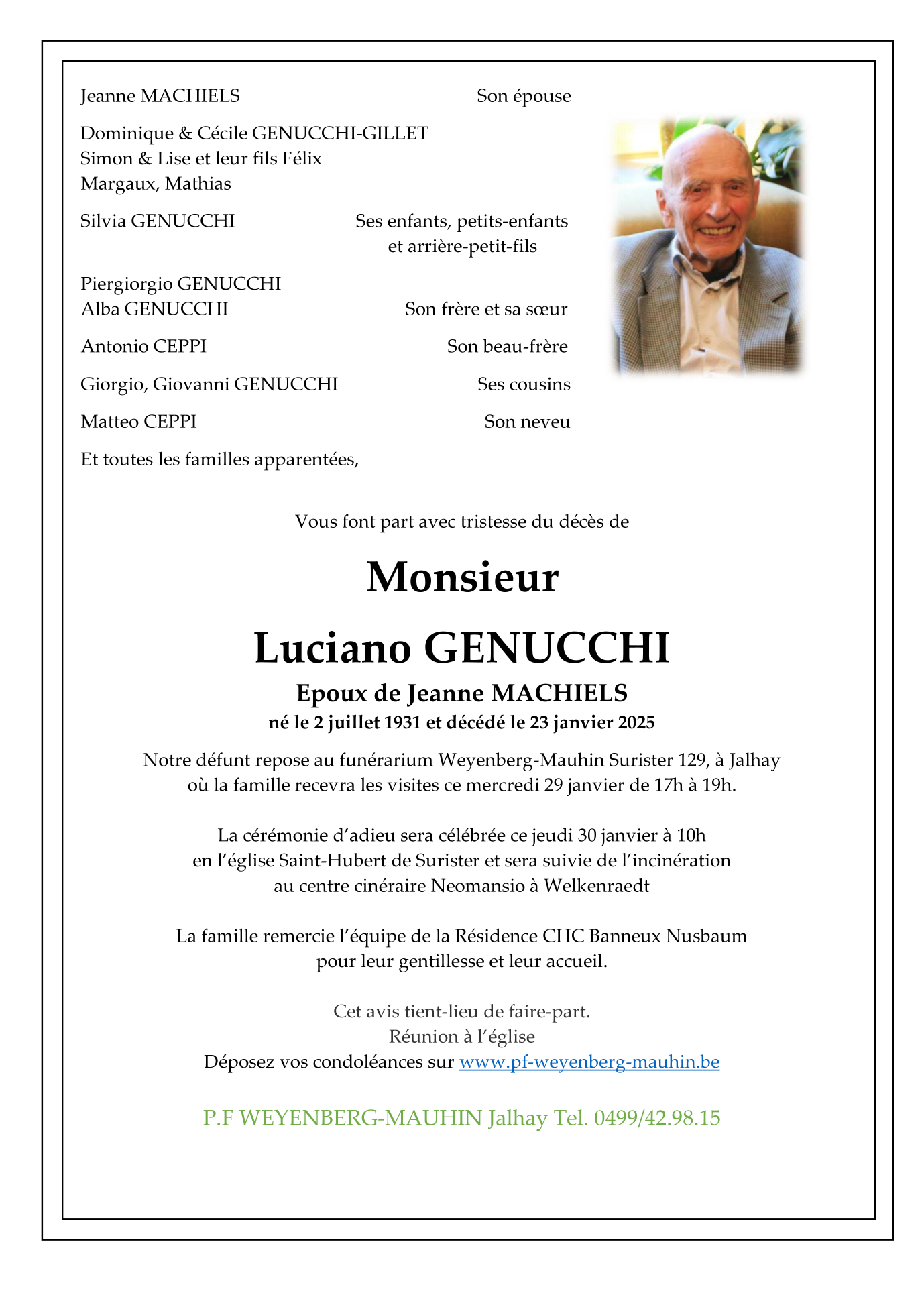 Décédé à Banneux (4141) le jeudi 23 janvier 2025 à l'âge de 93 ans