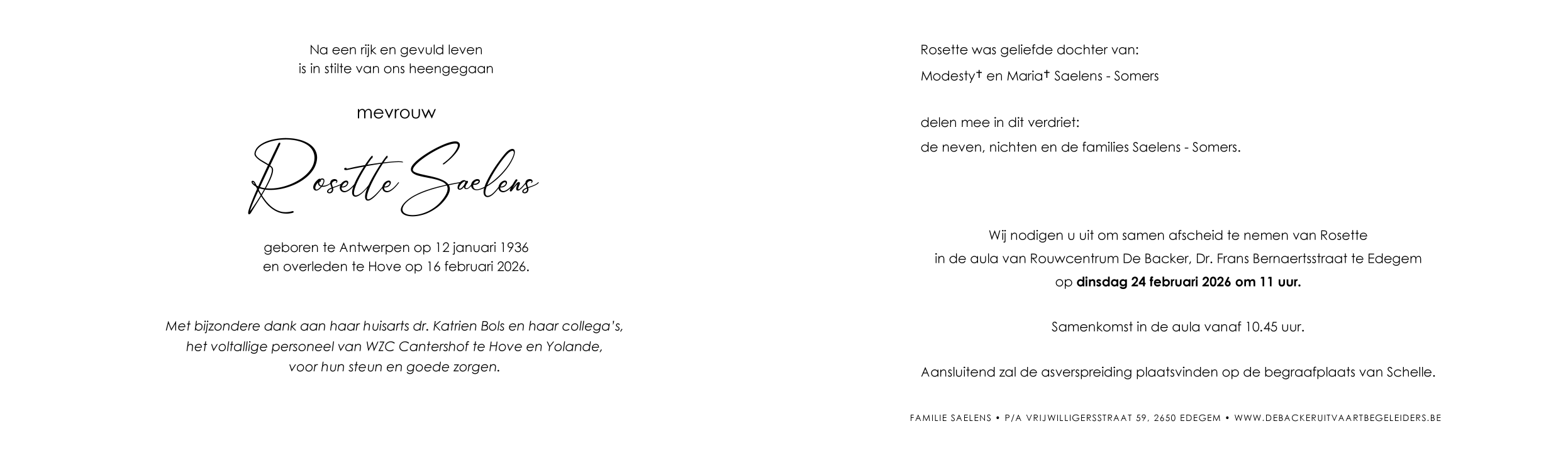 Décédée à Hove (2540) le lundi 16 février 2026 à l'âge de 90 ans