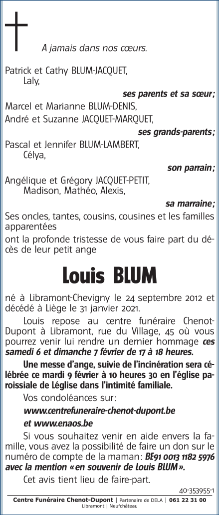 Fallecido en Liège (4000) el domingo, 31 de enero de 2021 a la edad de 8 años