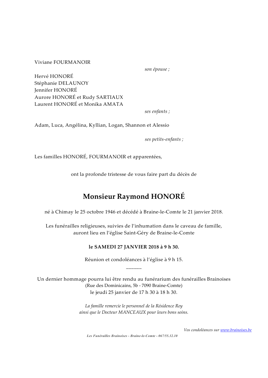 Overleden te Braine-le-Comte (7090) op zondag 21 januari 2018 op 71-jarige leeftijd