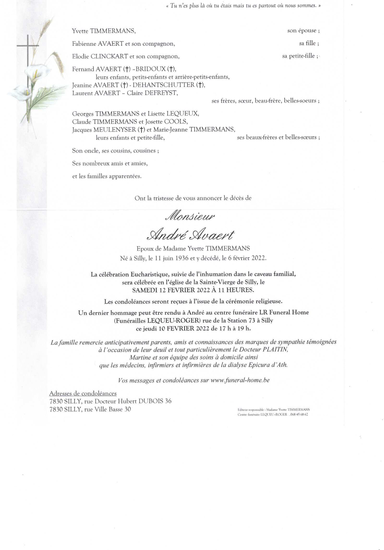 Echtgenoot van Madame Yvette TIMMERMANS