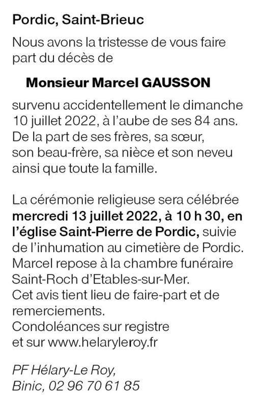 Décédé à Pordic (22590, France) le dimanche 10 juillet 2022 à l'âge de 83 ans