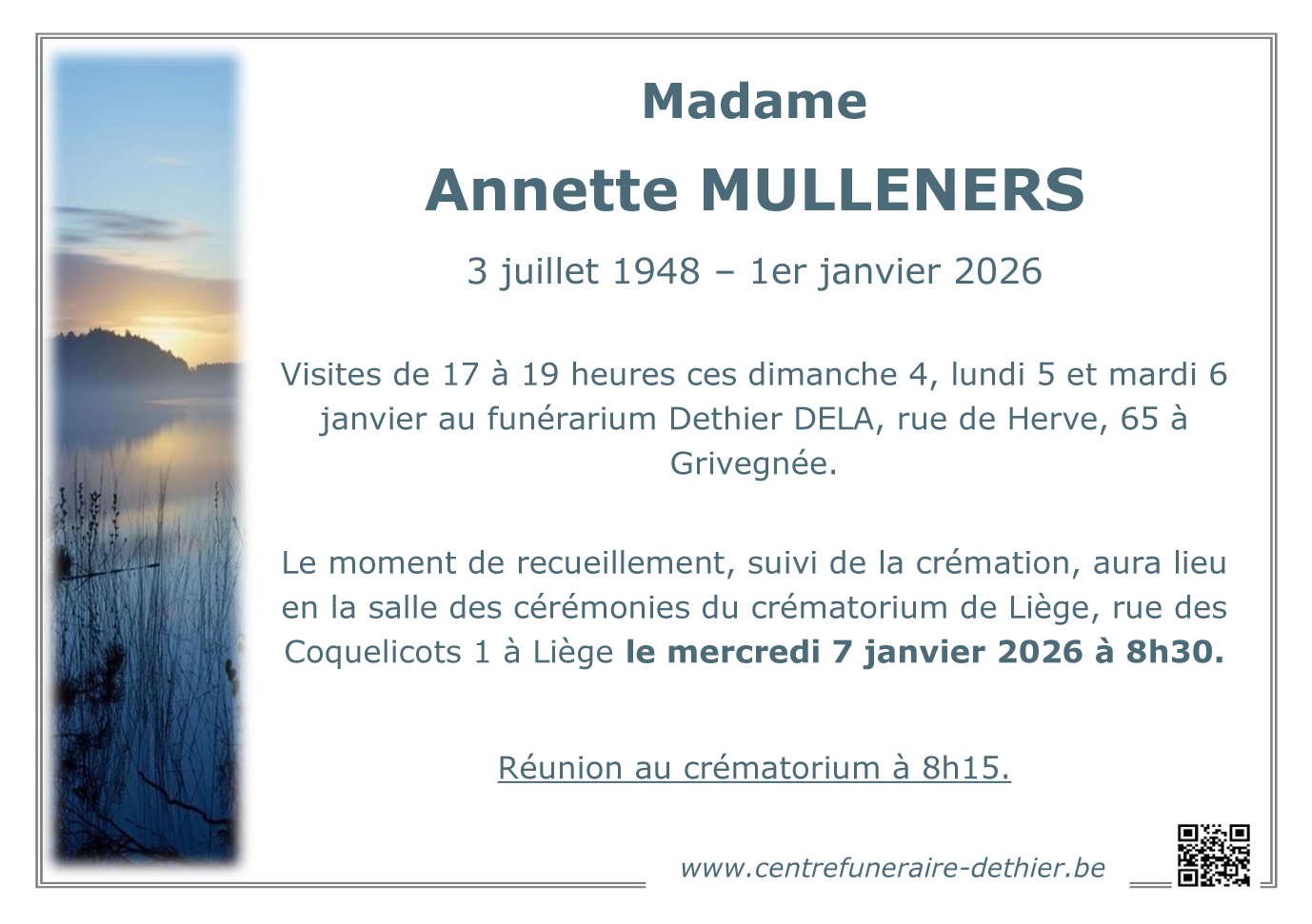 Fallecida en Liège (4000) el jueves, 1 de enero de 2026 a la edad de 77 años