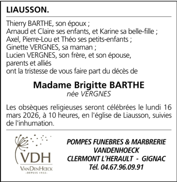 Décédée à Clermont-l'Hérault (34800, France) le mercredi 11 mars 2026 à l'âge de 70 ans