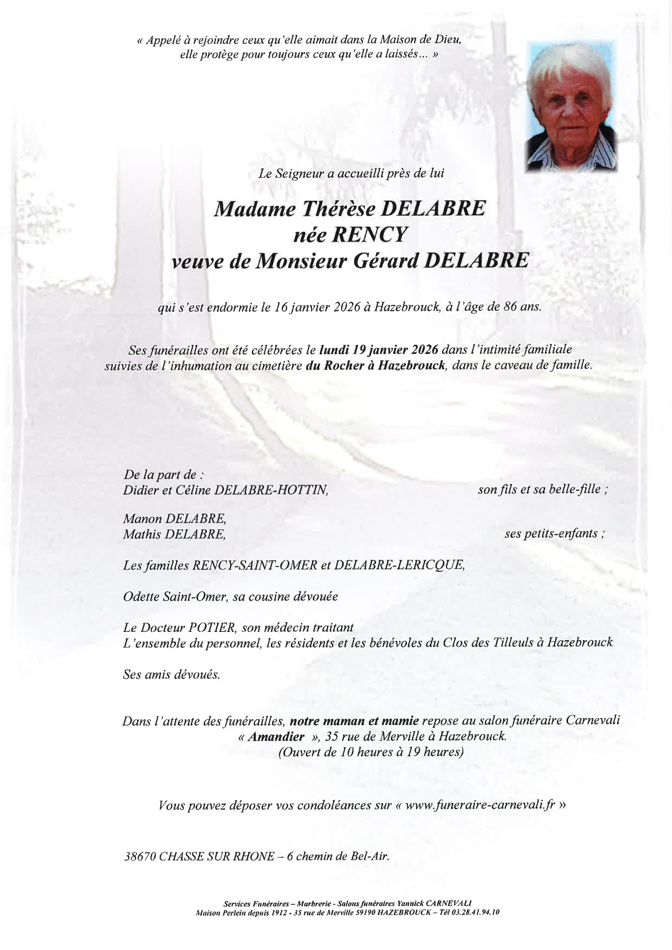 Décédée à Hazebrouck (59190, France) le vendredi 16 janvier 2026 à l'âge de 86 ans
