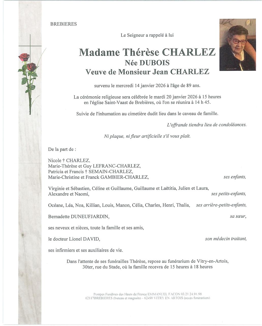 Viuda de Monsieur Jean, Henri, François CHARLEZ