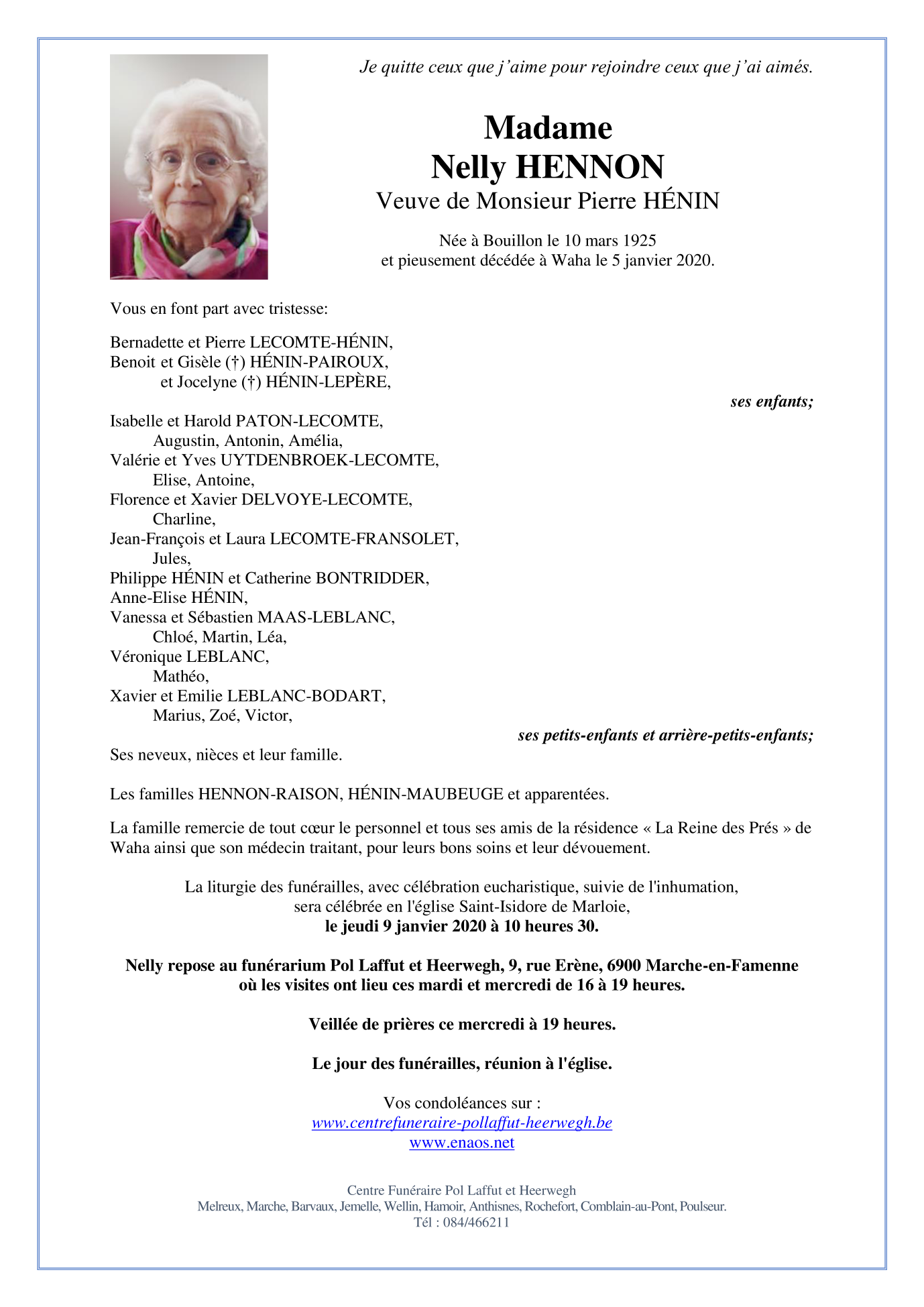 Died in Waha (6900) on 05 January 2020 at the age of 94 years