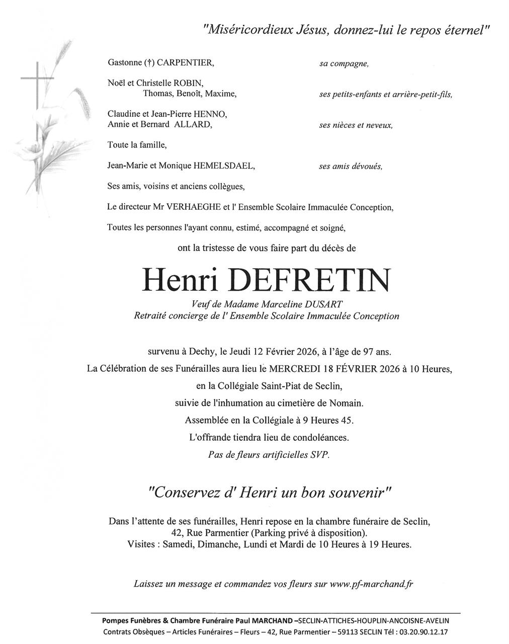 Monsieur Henri DEFRETIN