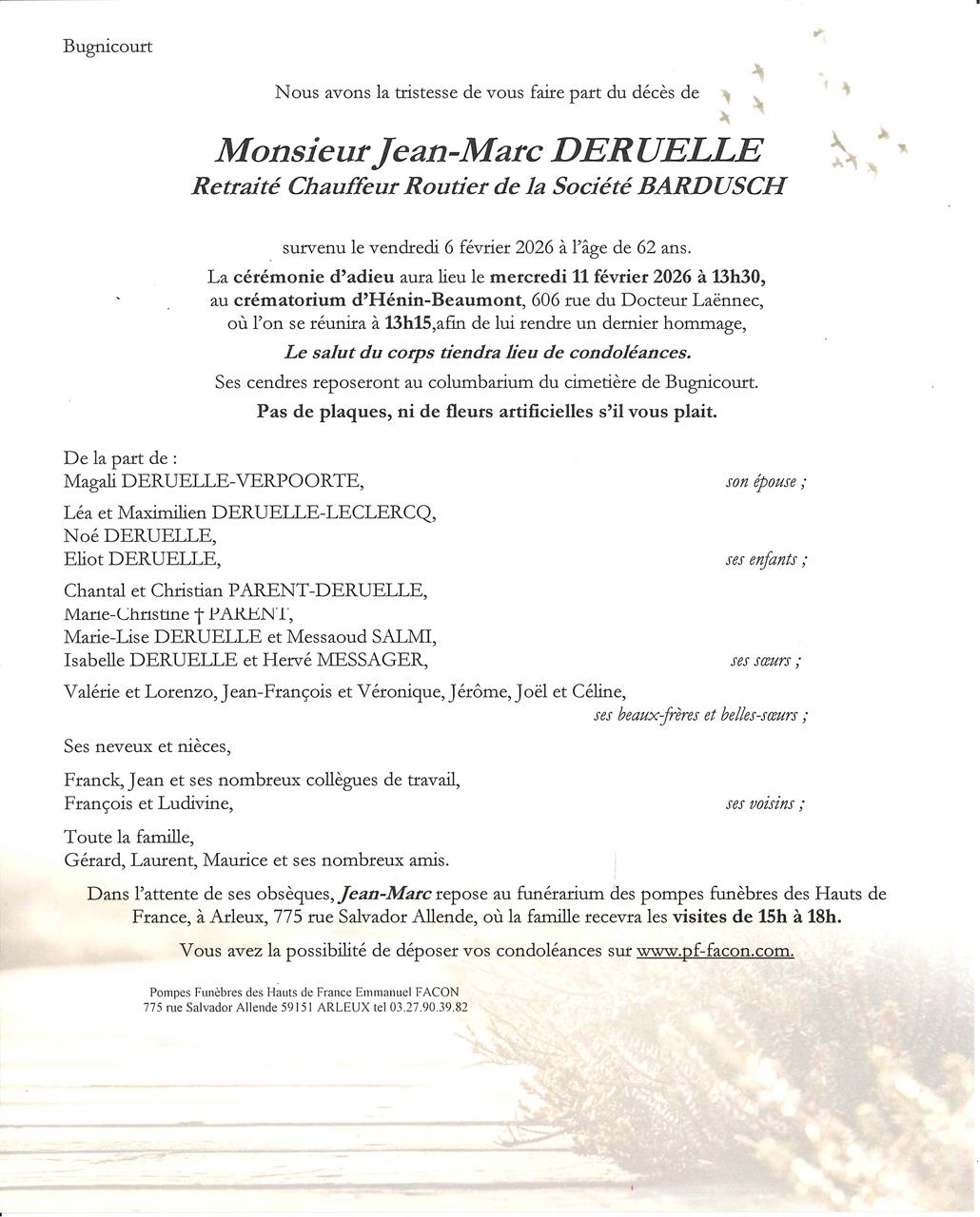 Fallecido en Bugnicourt (59151, Francia) el viernes, 6 de febrero de 2026 a la edad de 62 años