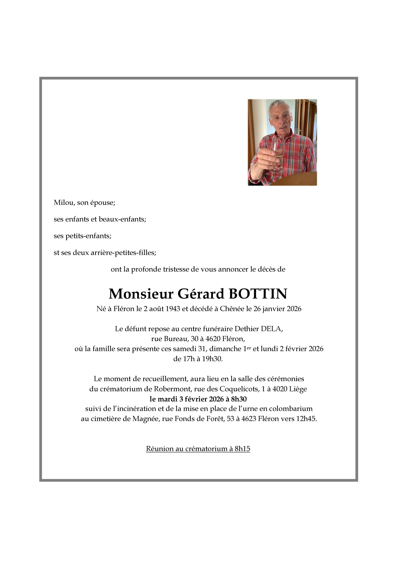 Died in Chênée (4032) on 26 January 2026 at the age of 82 years