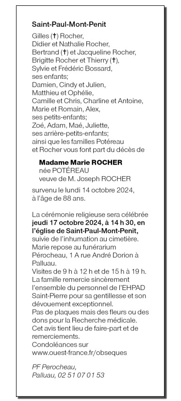 Madame Marie ROCHER née POTÉREAU