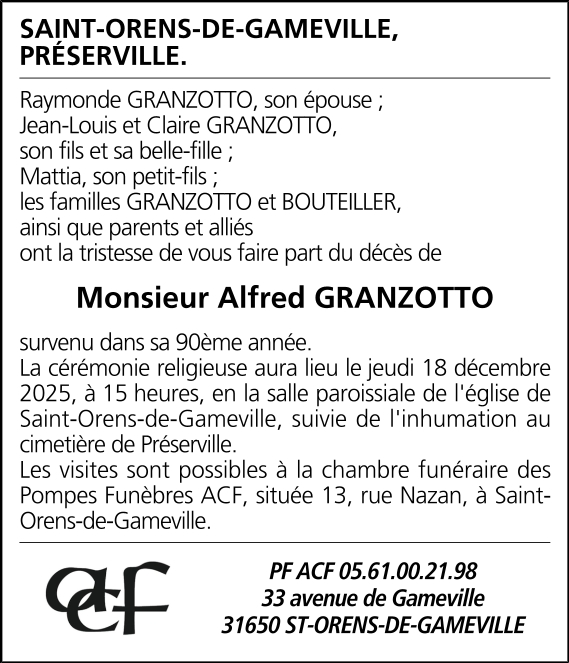 Avis de décès M. GRANZOTTO