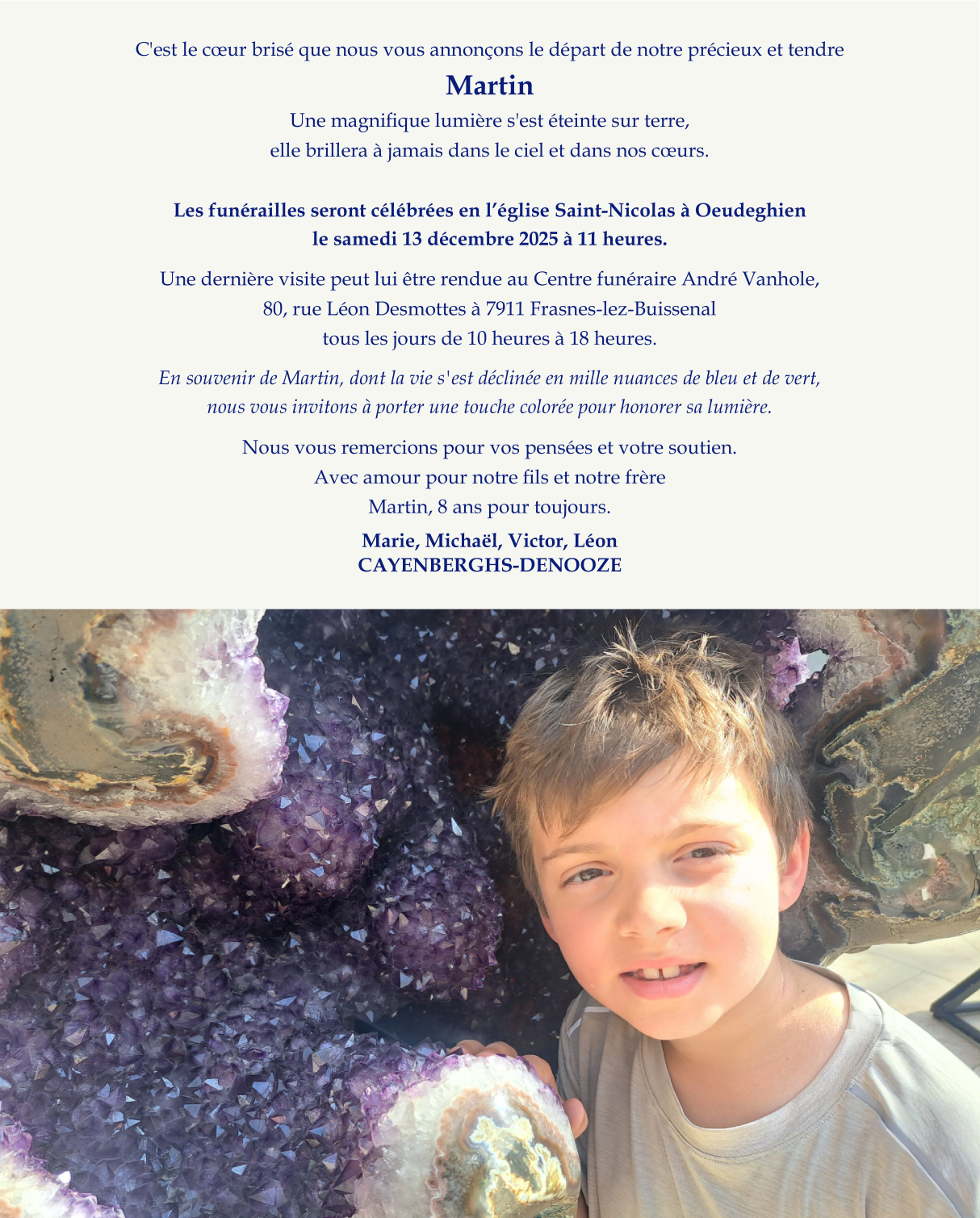 Décédé à Gand (9000) le samedi 6 décembre 2025 à l'âge de 8 ans
