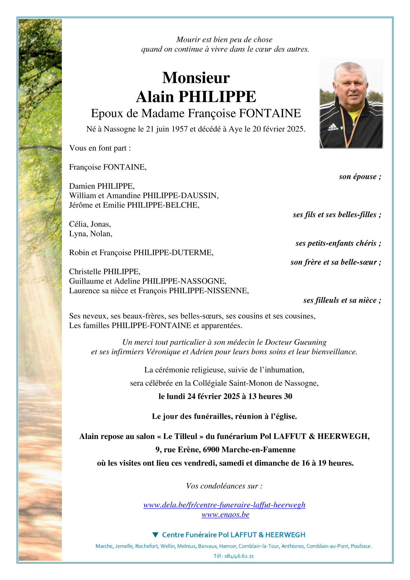 Né à Nassogne (6950) le vendredi 21 juin 1957