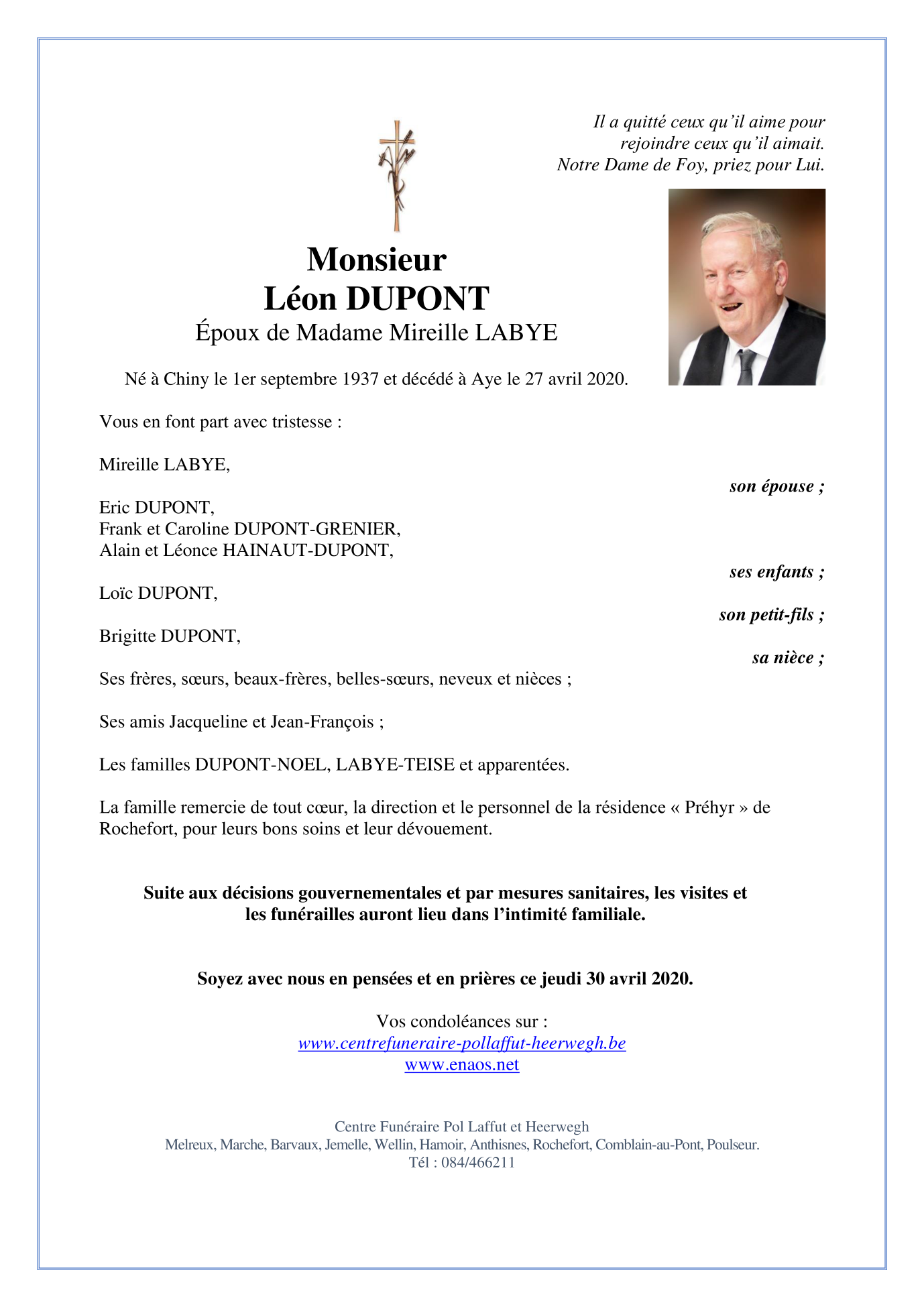 Died in Aye (6900) on 28 April 2020 at the age of 82 years