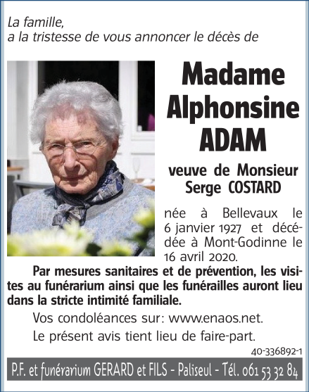 Died in Mont-Godinne (5530) on 16 April 2020 at the age of 93 years