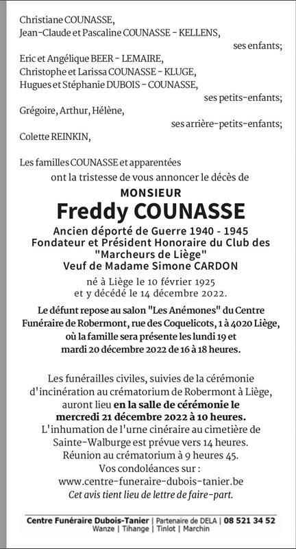Décédé à Liège (4000) le mercredi 14 décembre 2022 à l'âge de 97 ans