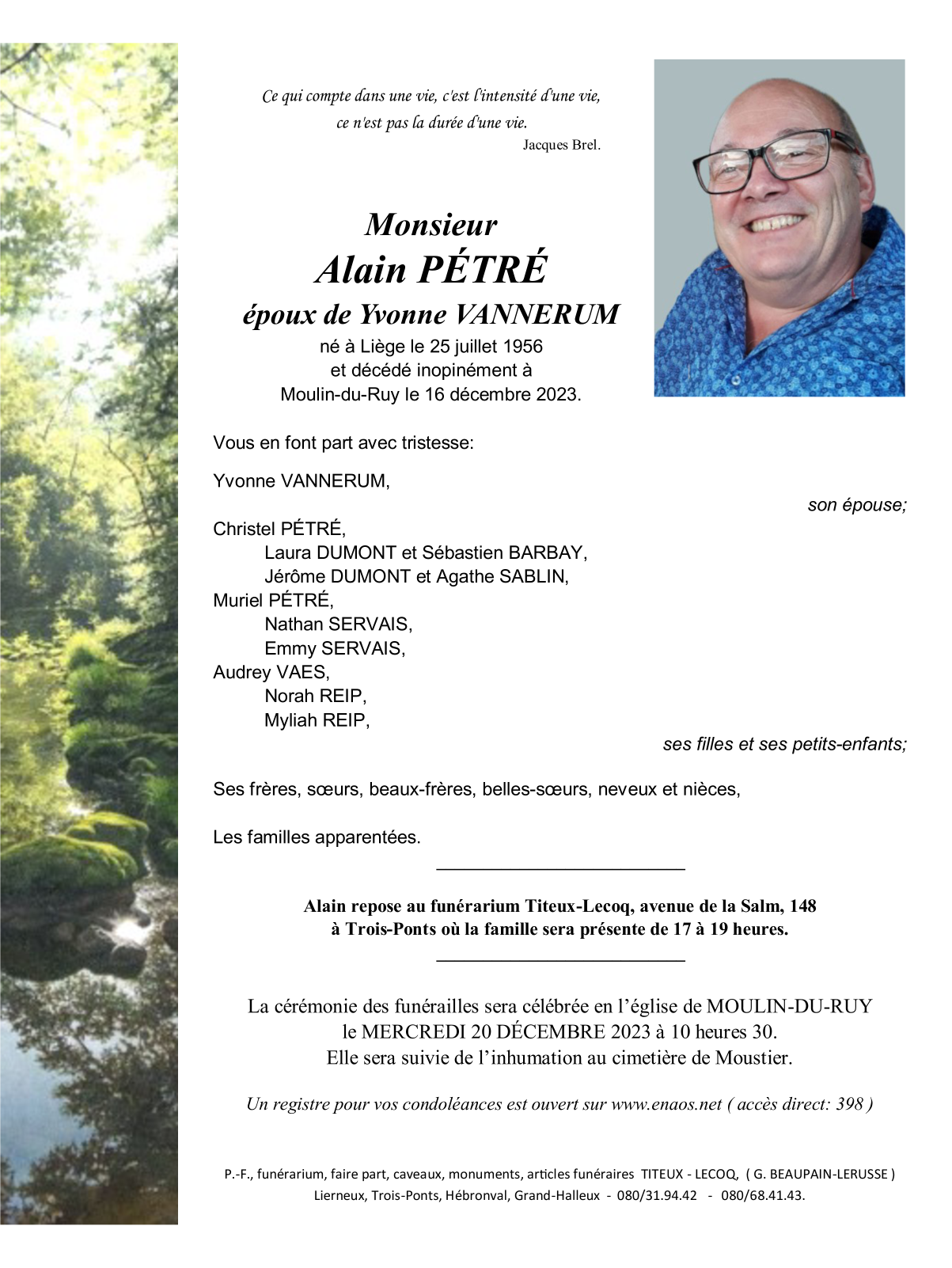 Died in Moulin du Ruy (4987) on 16 December 2023 at the age of 67 years