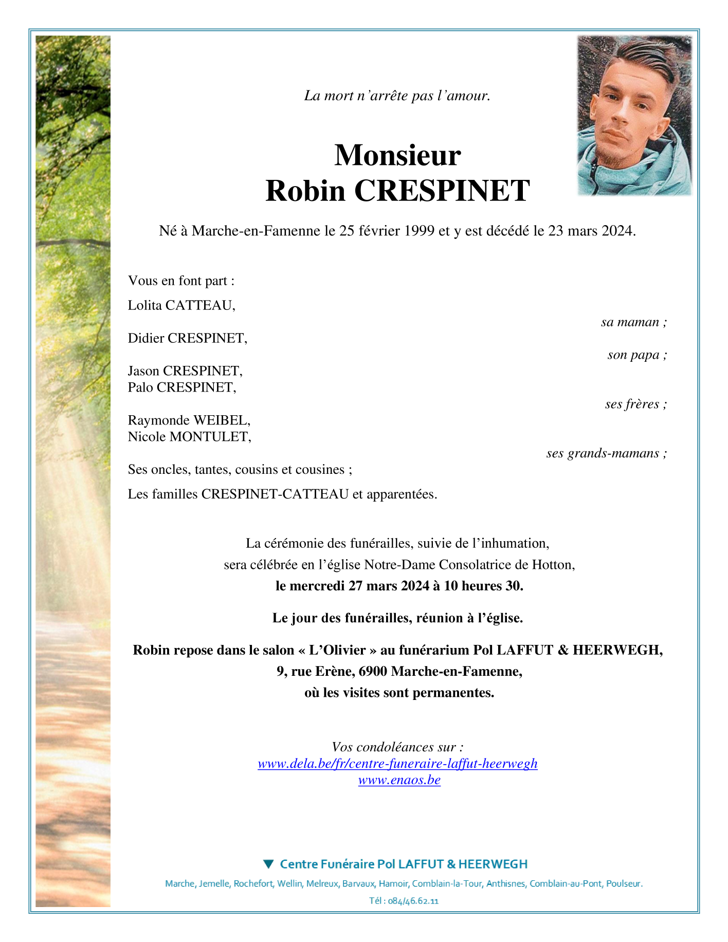 Décédé à Marche-en-Famenne (6900) le samedi 23 mars 2024 à l'âge de 25 ans