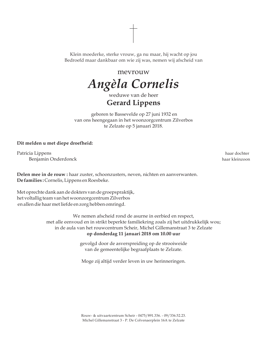 Died in Zelzate (9060) on 05 January 2018 at the age of 85 years