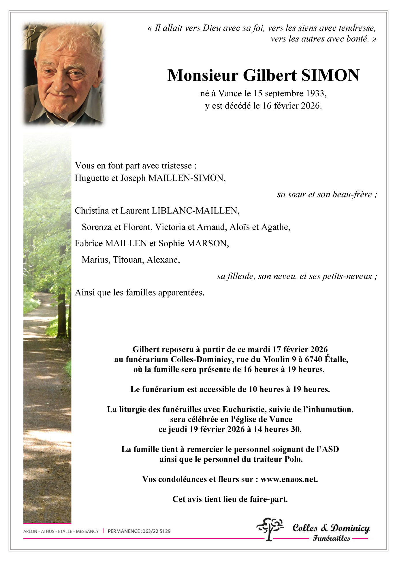 Décédé à Vance (6741) le lundi 16 février 2026 à l'âge de 92 ans