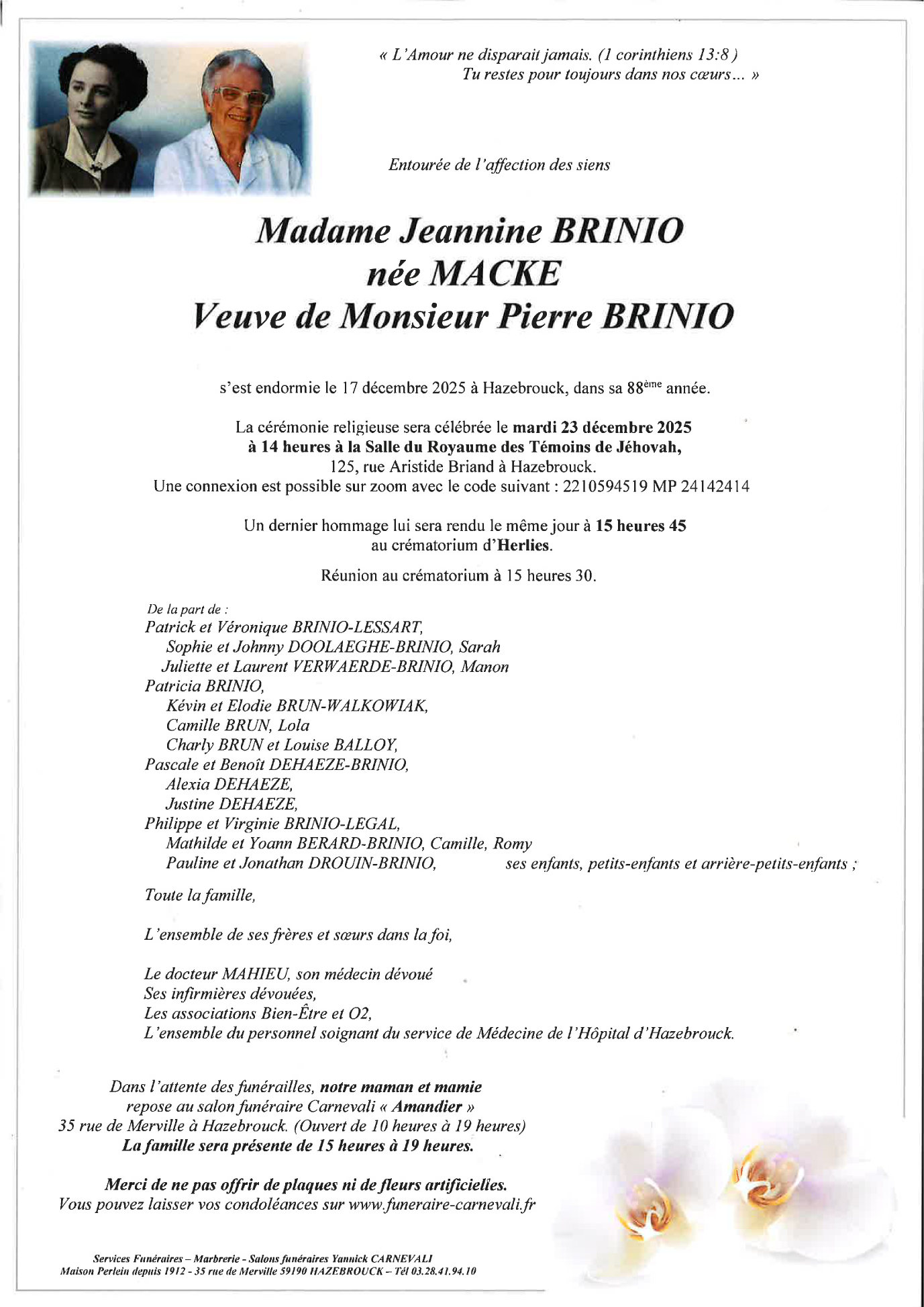 Veuve de Monsieur Pierre BRINIO