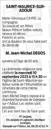Décédé à Saint-Pierre-du-Mont (40280, France) le vendredi 5 septembre 2025 à l'âge de 65 ans