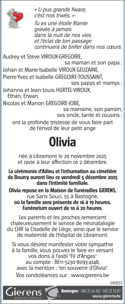 Née à Libramont-Chevigny (6800) le samedi 29 novembre 2025