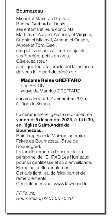 Née à Bournezeau (85480, France) le vendredi 11 août 1939