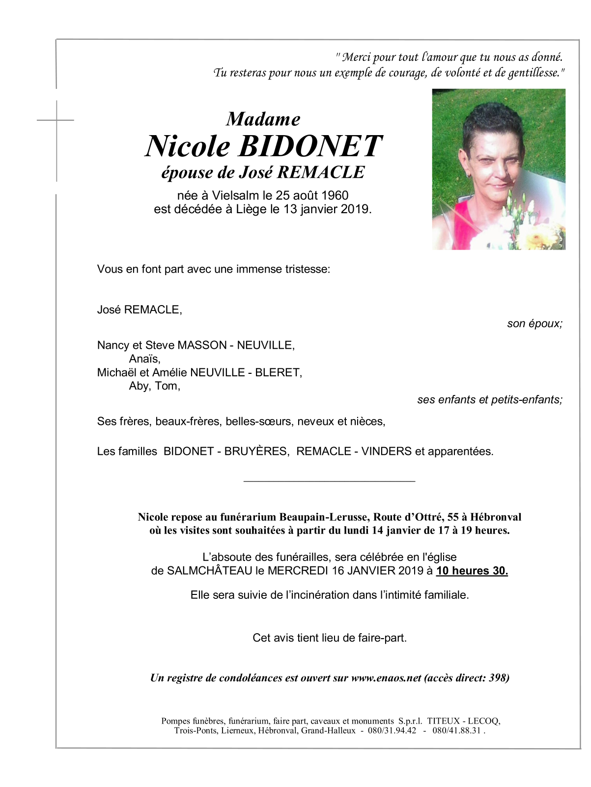 Epouse de Monsieur José REMACLE