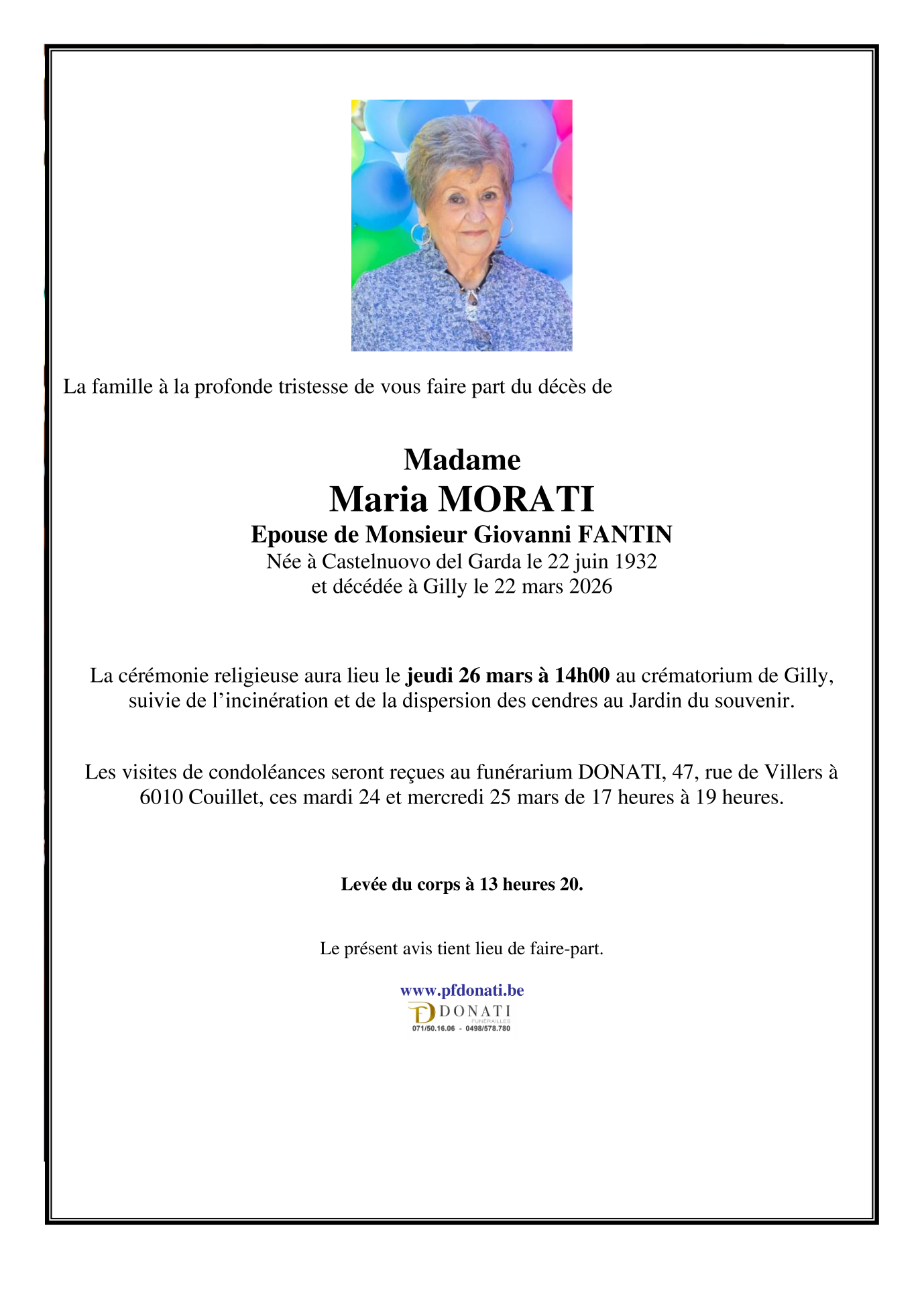 Epouse de Monsieur Giovanni FANTIN