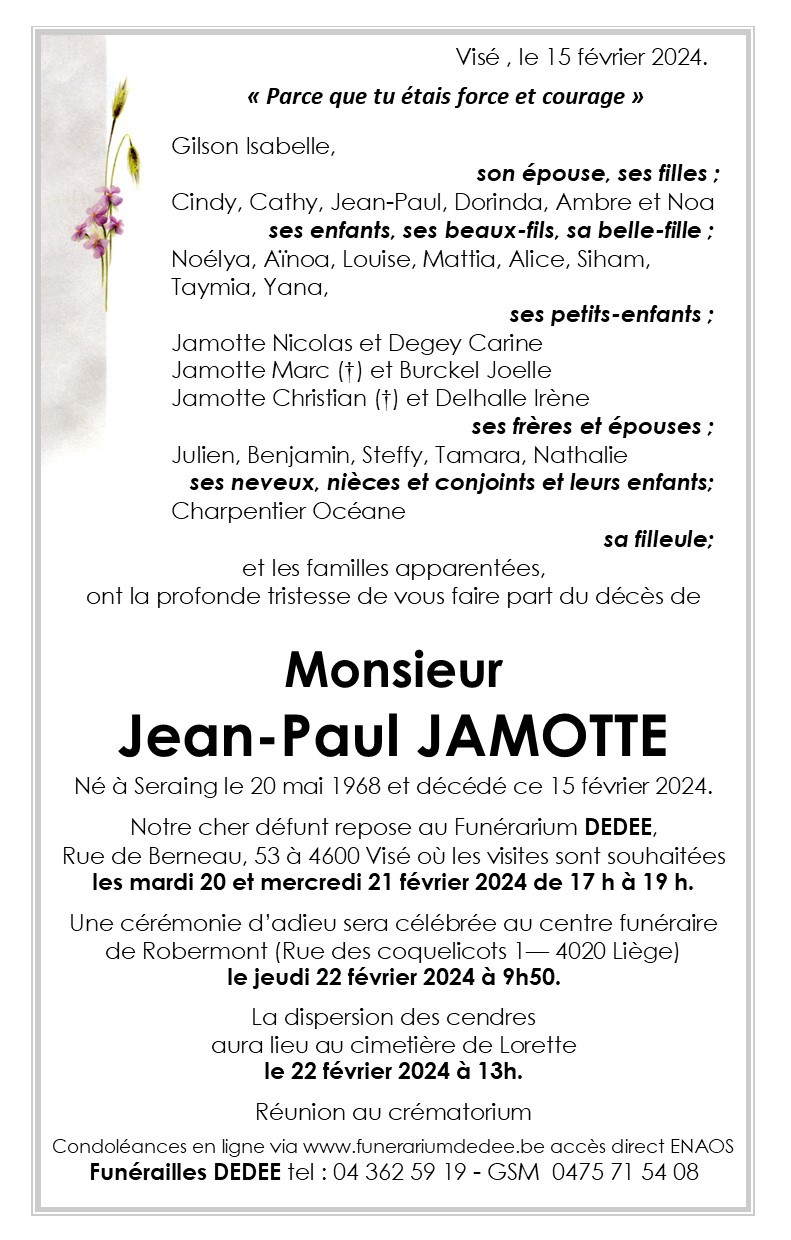 Décédé à Liège (4000) le jeudi 15 février 2024 à l'âge de 55 ans